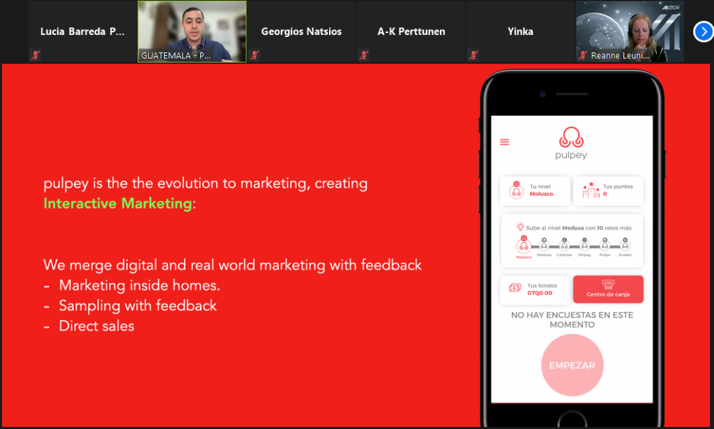 Los Ganadores nacionales fueron: Primer Lugar Rafael Garrido, startups Aplicación KAN realidad aumentada de los sitios arqueológicos de Guatemala. Segundo Lugar Rodolfo Orantes, startups PulpeyBox una herramienta de investigación de mercados. En tercer lugar, a Cristian Ramírez, startups Kidney Hope plataforma para donantes de órganos.